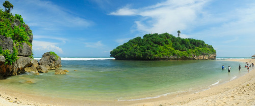West side of the beach has not lost the charm of the exotic; outrigger boat moored row, taking a break after a night wrestling with South sea waves. One of two fishermen seen casting nets into the water, hoping for some fish willing to come, surrender subsistence fishermen families. Yes, Drini Beach is also a traditional fishing village. Characters more powerful waves and straight into the ocean without blocking coral, be the right place for the fishermen to leave and return to sea lanes.